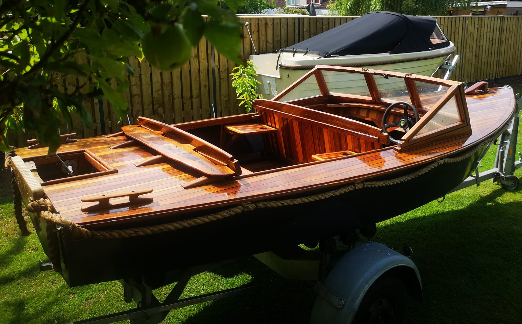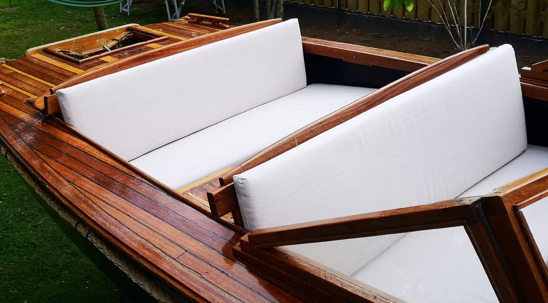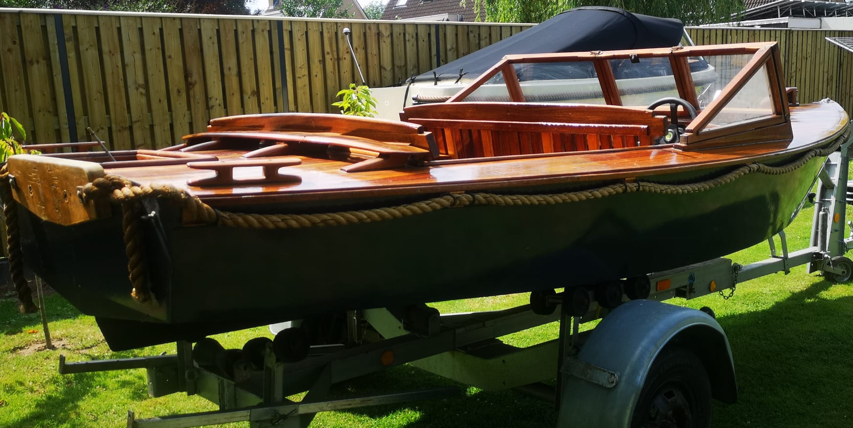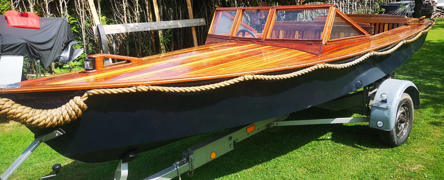 Hierbij verkoop ik een mooie houtenboot met stuursysteem en nieuw op maat gemaakte kussen bij (MATRIX KUSSENS). Boot is voorzien van veel opbergruimte voor en achter en ook onder vloer. De boot is 480 lang en 180 breed.