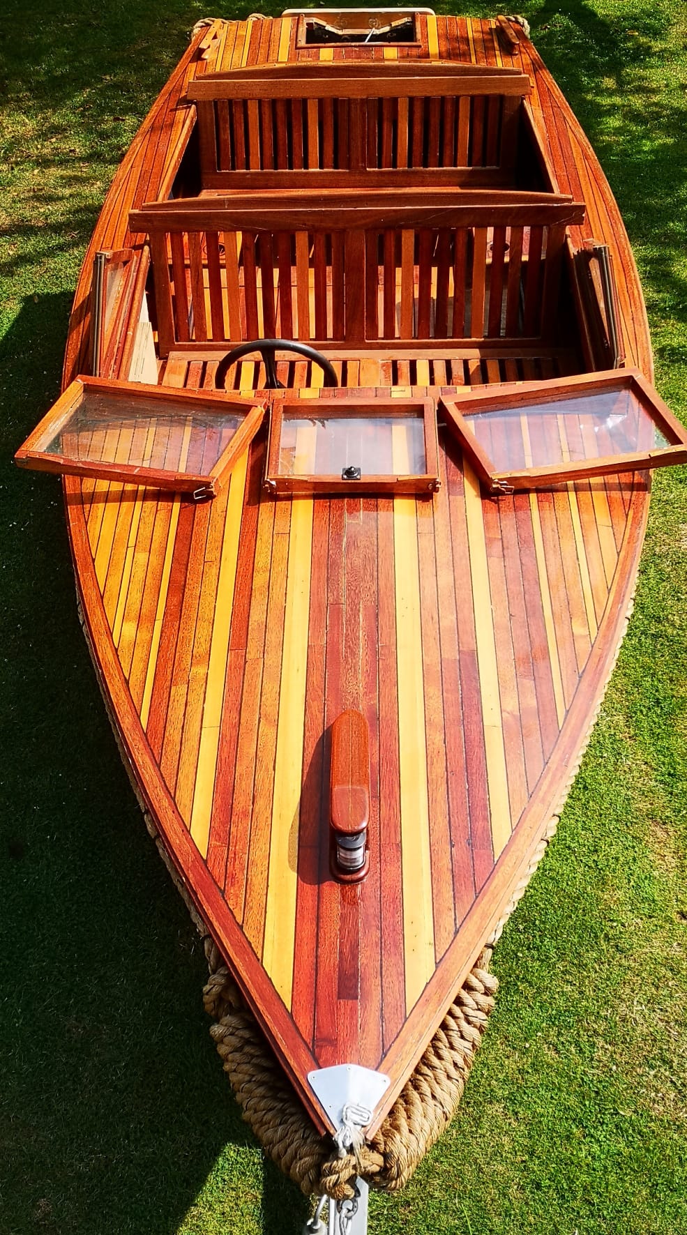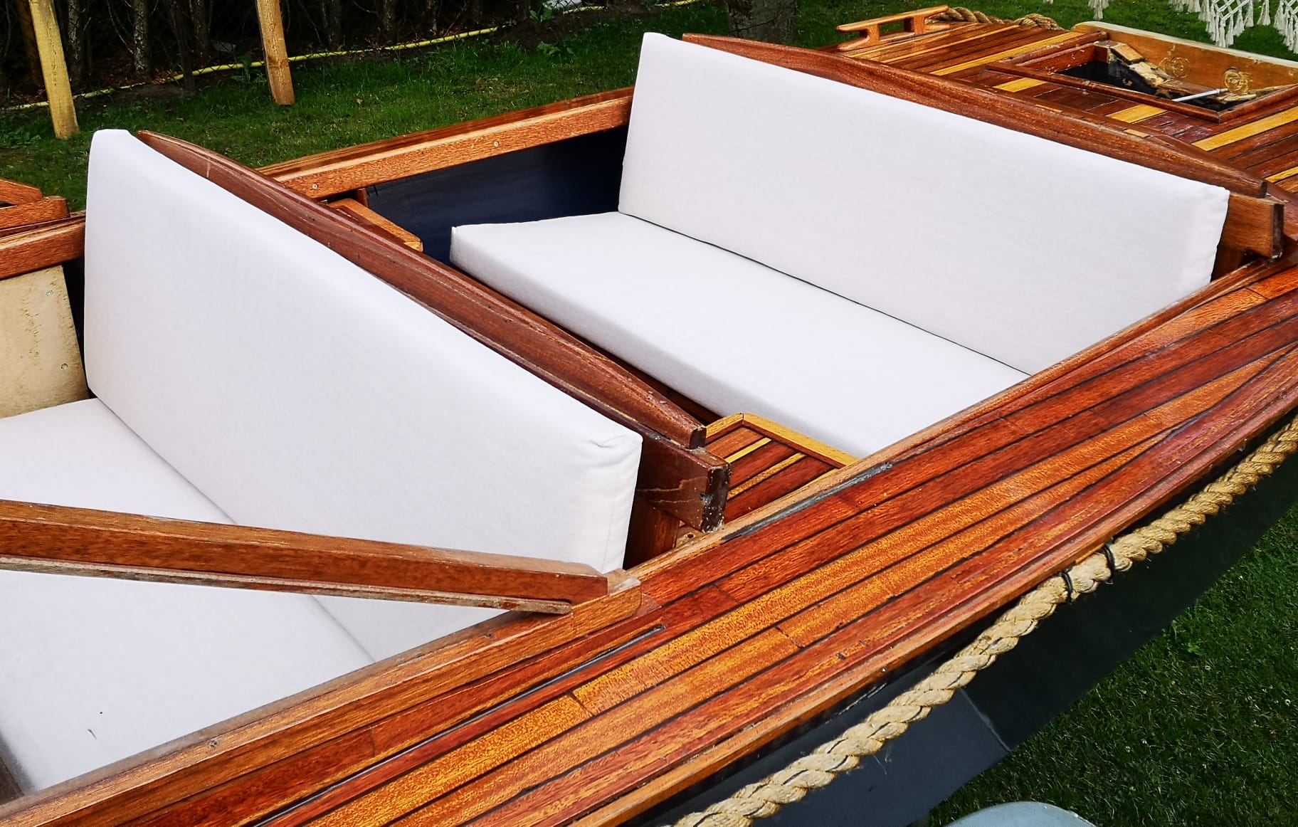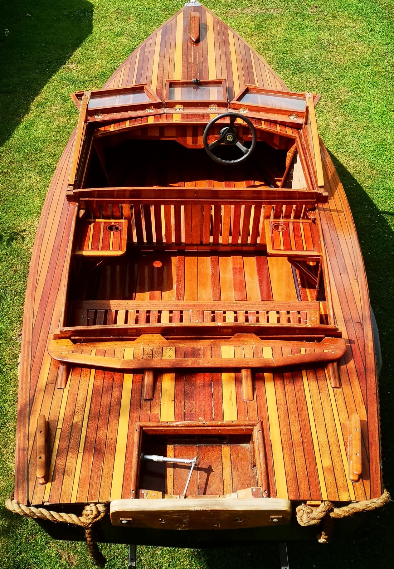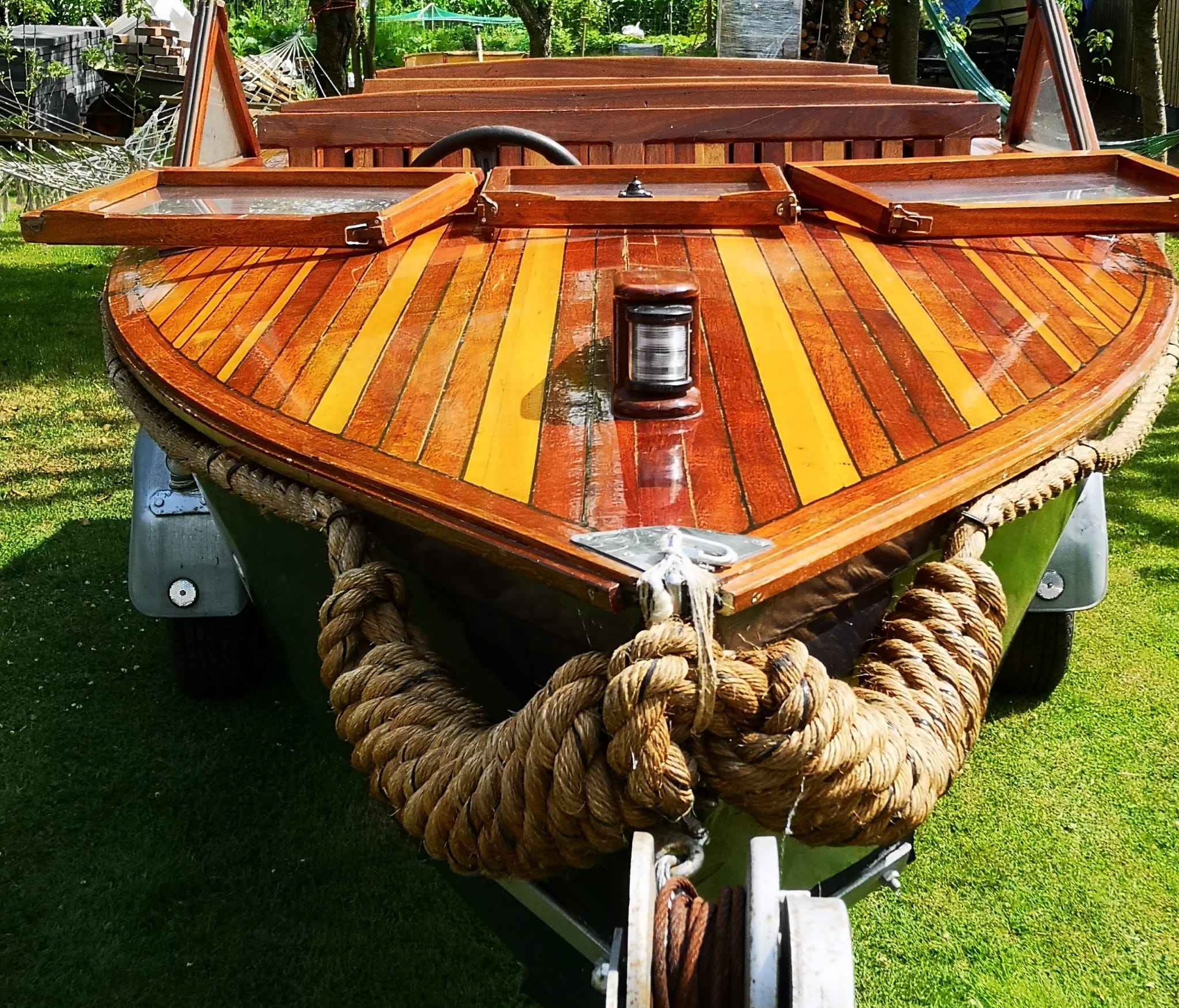 Hierbij verkoop ik een mooie houtenboot met stuursysteem en nieuw op maat gemaakte kussen bij (MATRIX KUSSENS). Boot is voorzien van veel opbergruimte voor en achter en ook onder vloer. De boot is 480 lang en 180 breed.